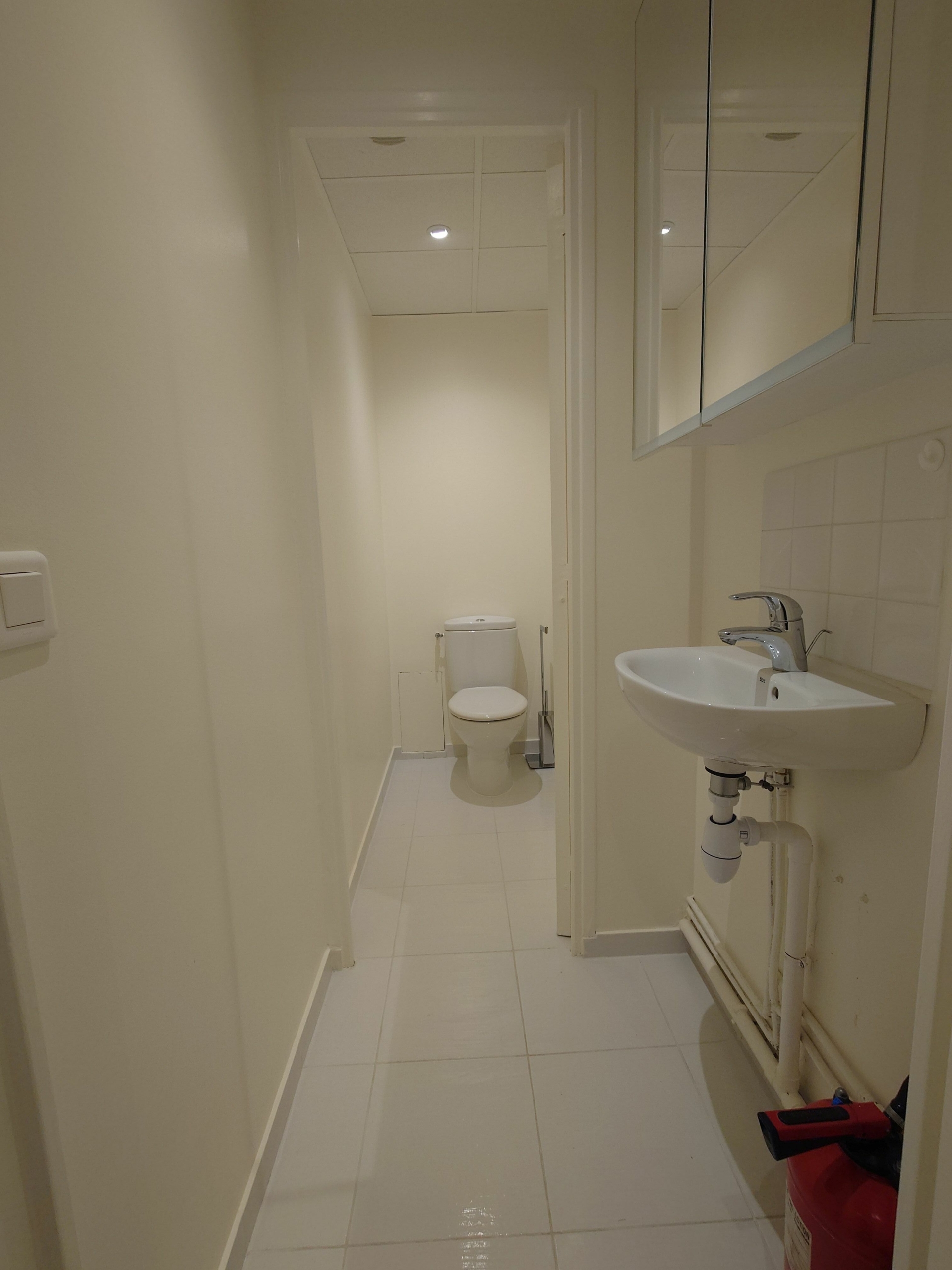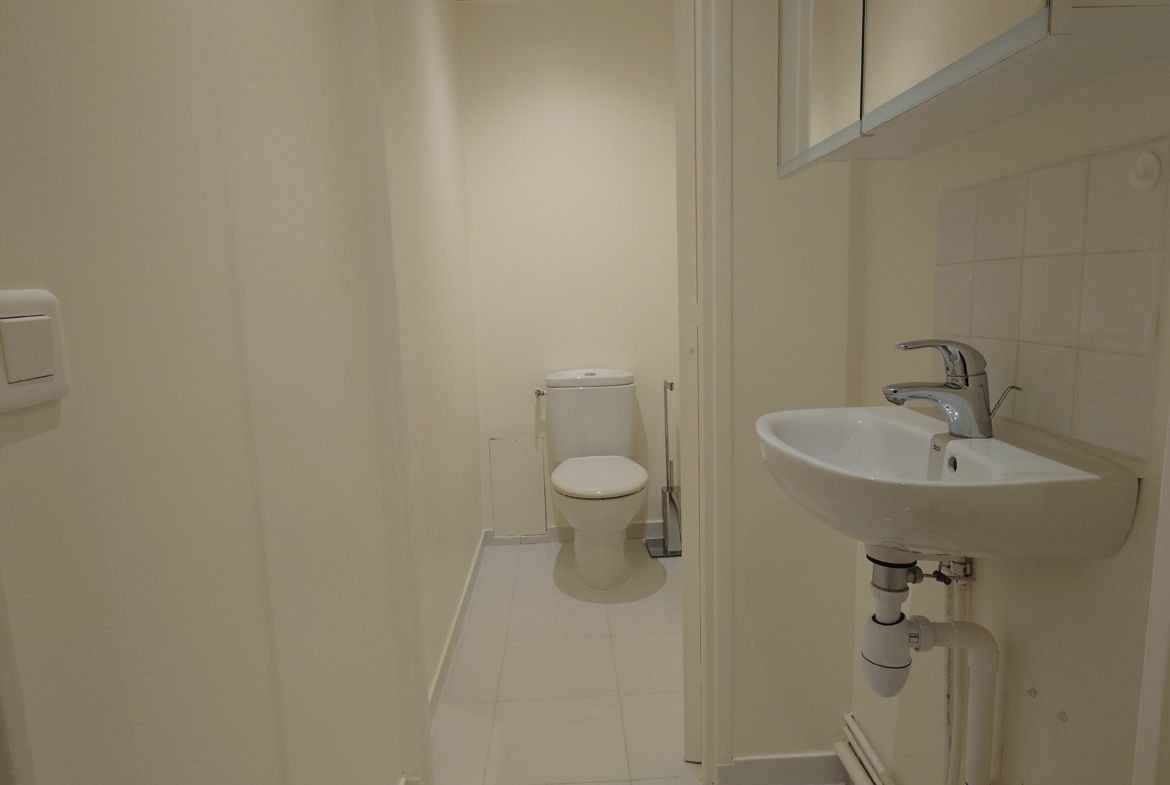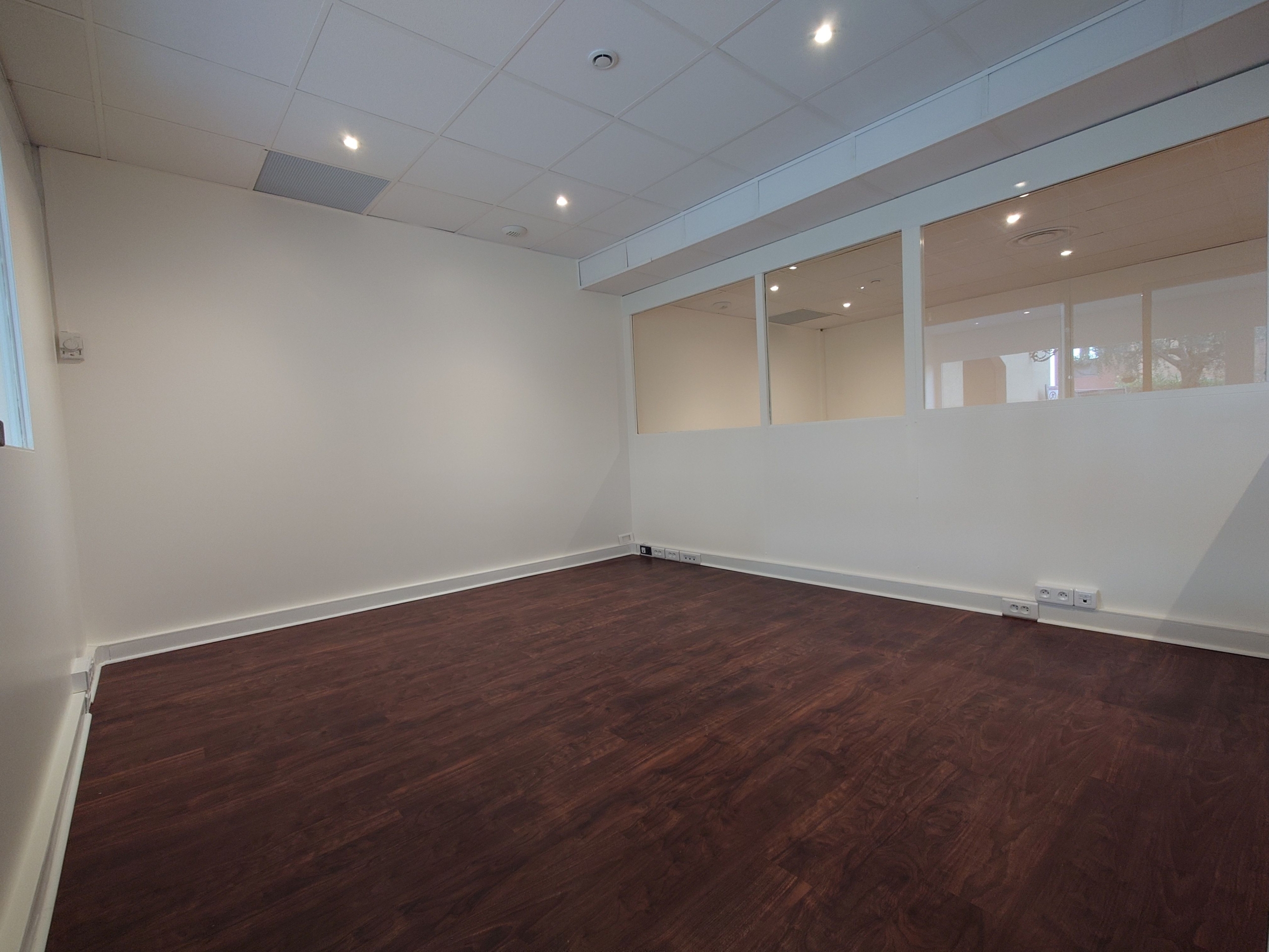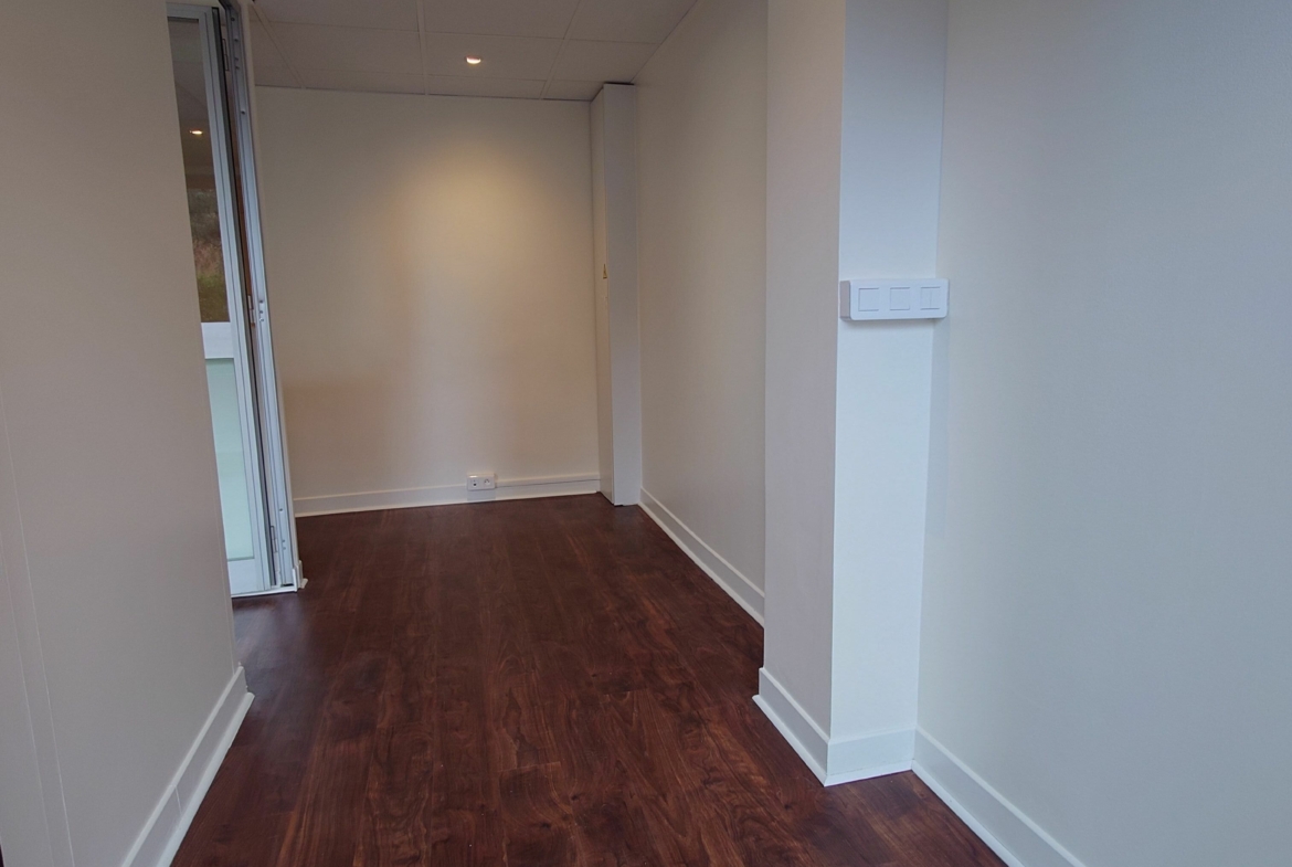 It comprises a main room with three offices separated by glass partitions, an airlock, a kitchenette and toilets. It also has a large shop window, offering excellent visibility.